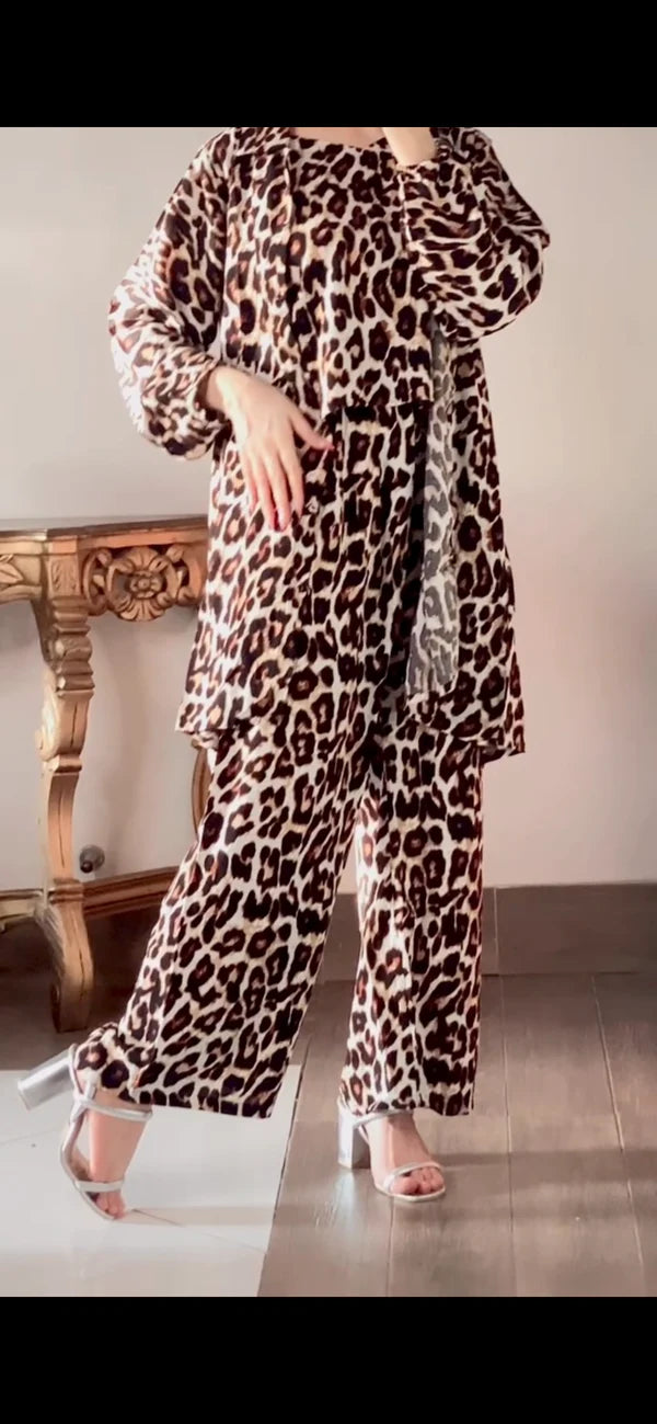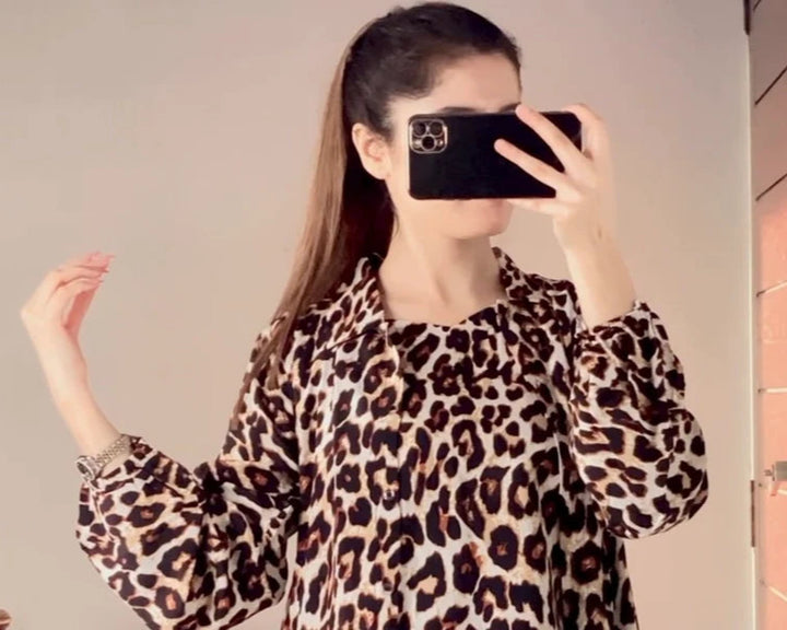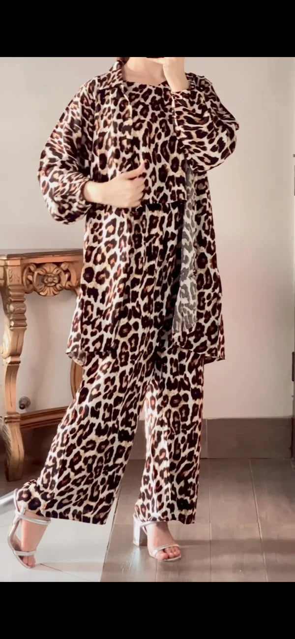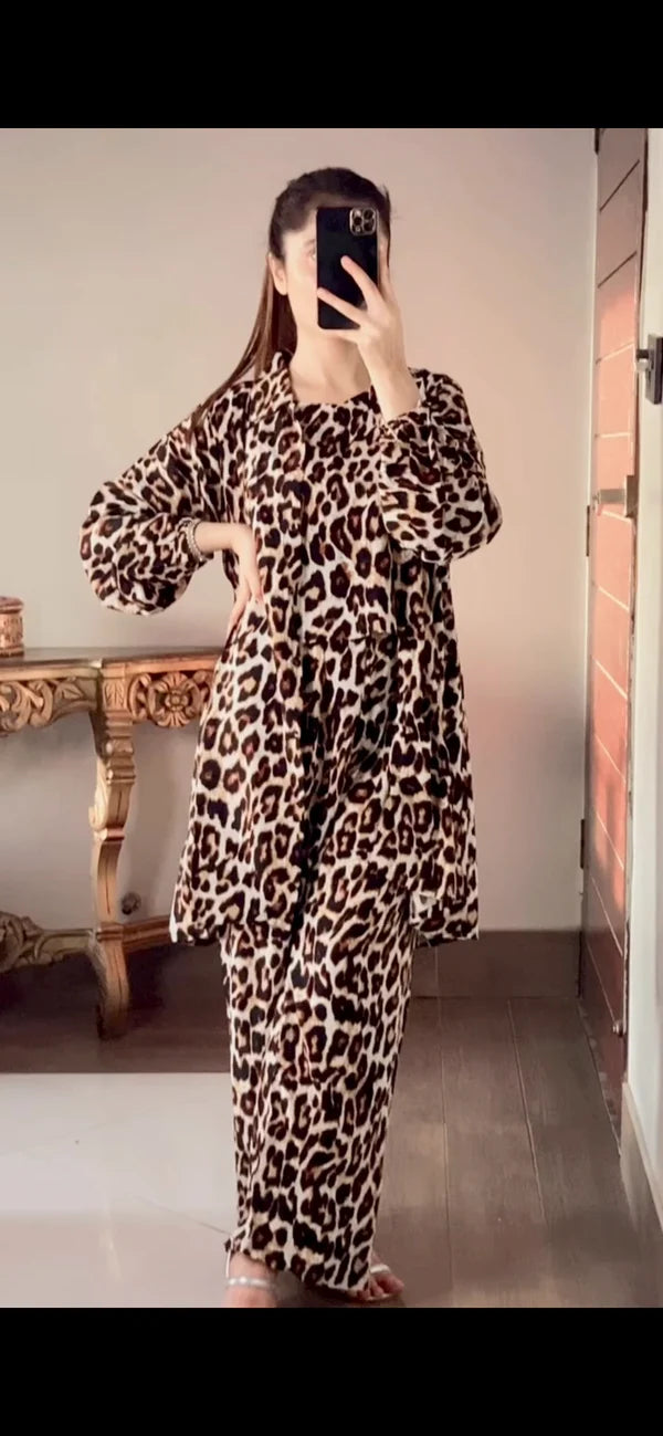Introducing our Cheetah 3pc mightwear, made for versatile use as a comfortable nightwear or stylish casual wear gown dress. Enjoy the soft fabric and effortless design, perfect for any occasion. Made with quality and comfort in mind.